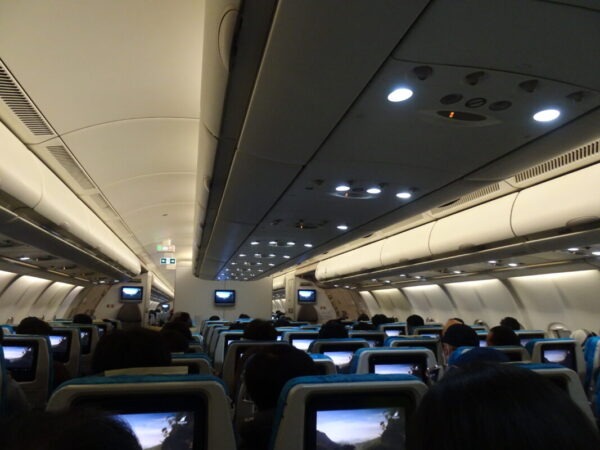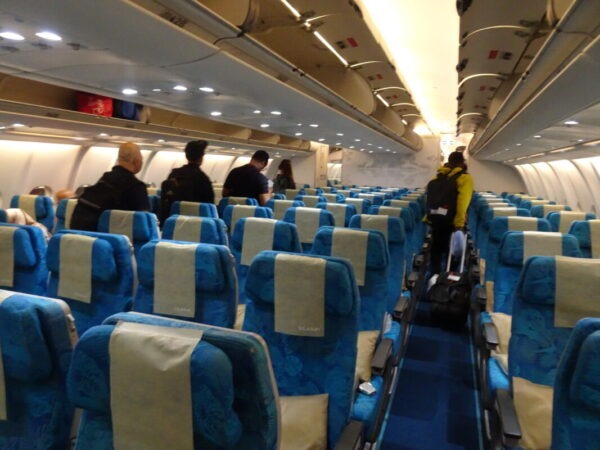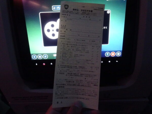 シートベルト着用サイン消灯後 税関申告書の配布ですね