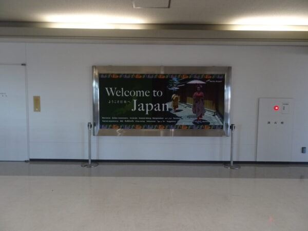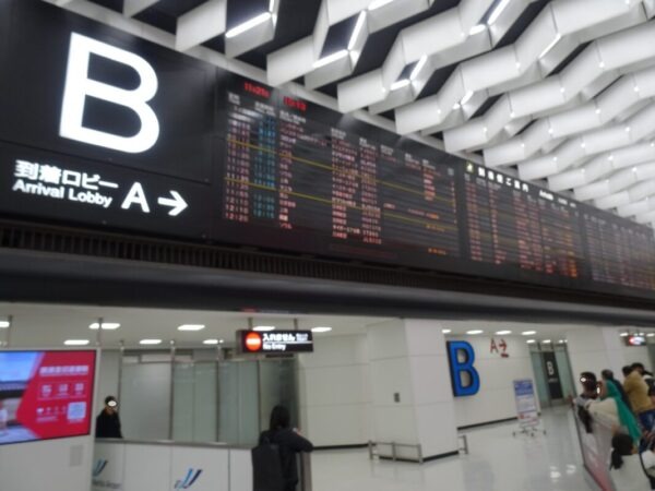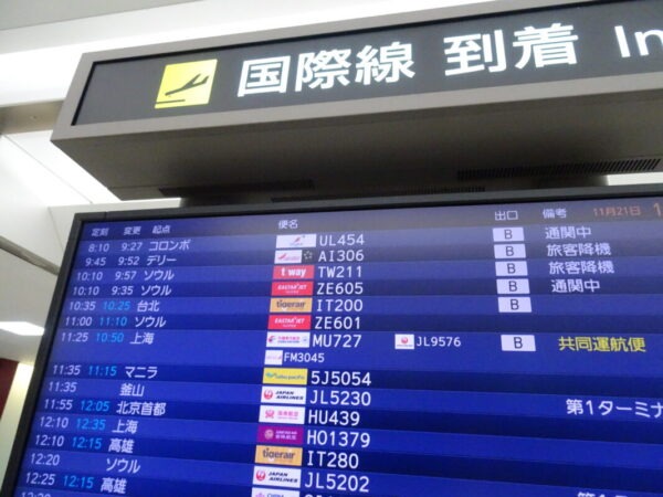 手荷物検査後のエリアは撮影禁止のため、UL454便のボードを一枚