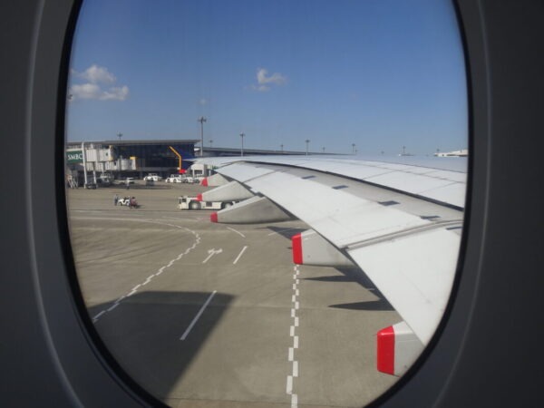 定刻 10:00発のところ 10:03 ドアクローズ 10:09 プッシュバックとなりました。