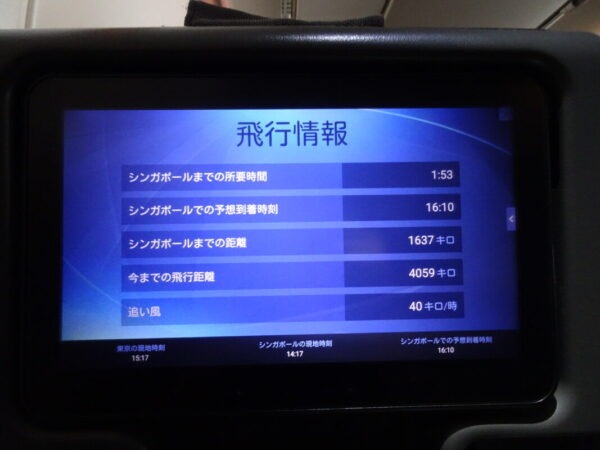 シンガポールまでは 約4時間半といったところでしょうか