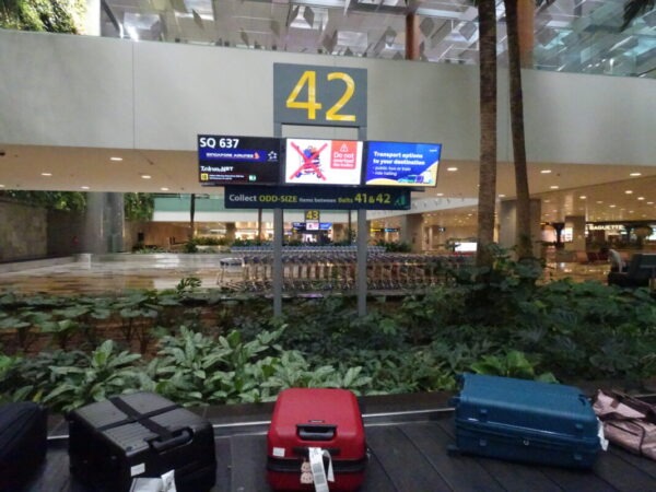 預け荷物を受け取らないとね SQ637 42番テーブルですね