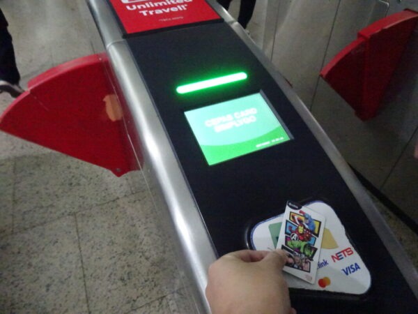 イージーリンクカード(EZ-Link Card)を端末にかざした上で