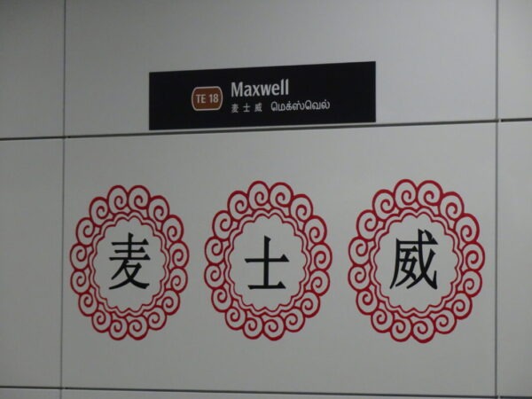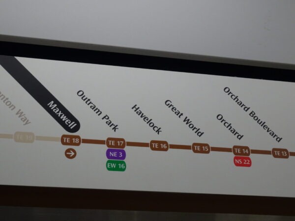 マクスウェルフードセンター/Maxwell Food Centre での食事を楽しみまして MRTトムソン・イーストコースト線 (Thomson-East Coast Line) マクスウェル駅/Maxwell より オーチャード/Orchard駅 を目指します。