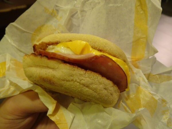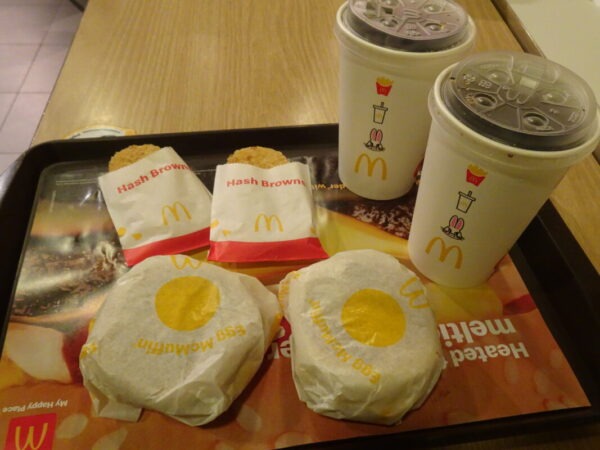 ということで Egg Muffin Meal 6.15$×2 オーダー としました。ちょっと食べている間に、11時のオープン時間になるからね(笑)