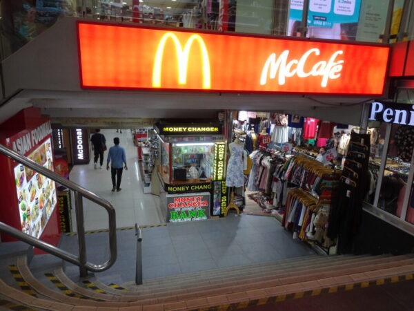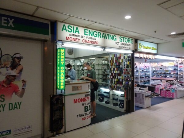 写真はのちほど来たときのものですが、Asia Engraving Store に行くのには Lucky Plaza B1 マクドナルドを目指す形でいくと分かりやすいかと思います。階段を降りて マクドナルド左手にして右折すると店舗ですが… 初めては迷うよ(笑)だもんで、時間には余裕をもって行きましょう