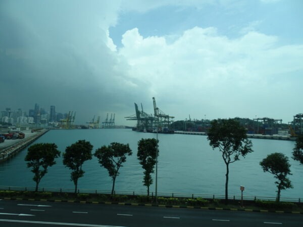 遠くに見えるは 貿易港らしい シンガポールの姿でしょうか