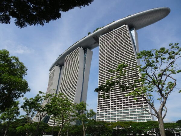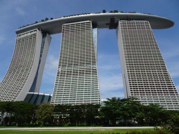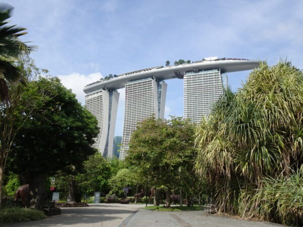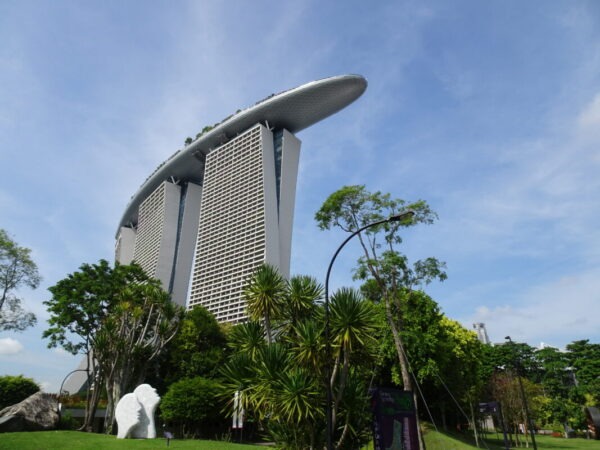 この角度からの マリーナベイサンズ よく上のプール乗っかってるよなぁ