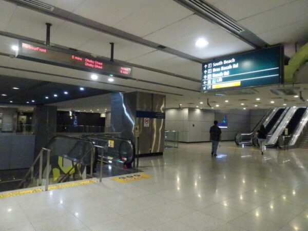 気を付けなければならないのは To Marina Bay でないと Bayfront には行かないこと HarbourFront 行きが続いていたので、隣駅で往路同様に乗り換えることにしました。