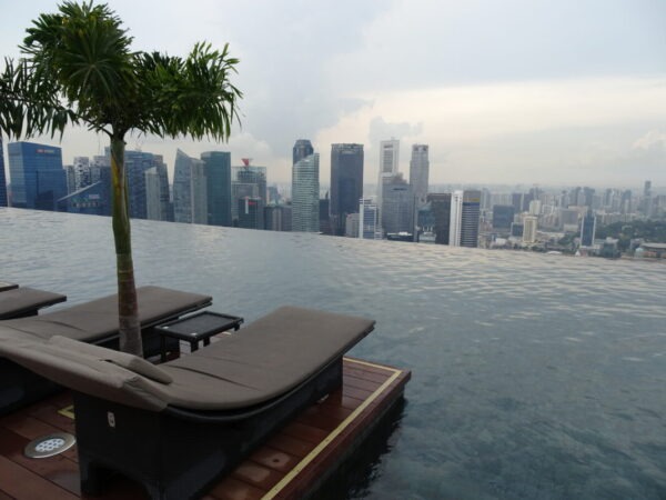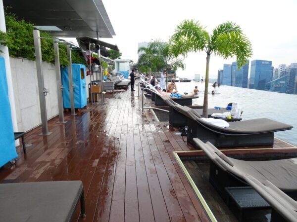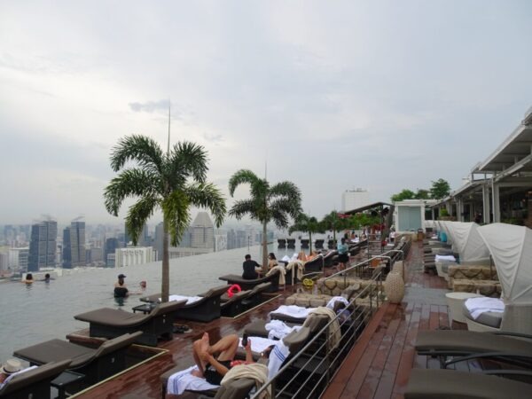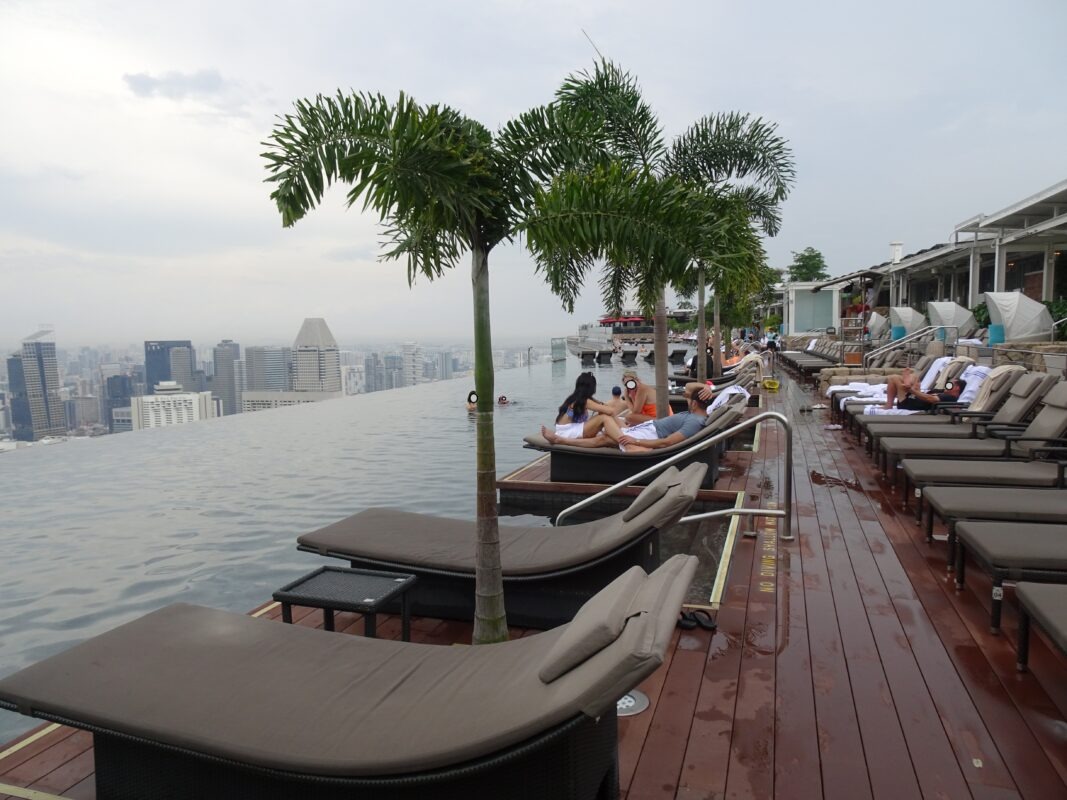 サンズ スカイパーク展望デッキ からの眺望を楽しみまして、宿泊者専用エリアへと戻ってきました。マリーナベイサンズ といえば インフィニティプール ですよねぇ♪