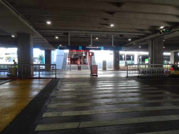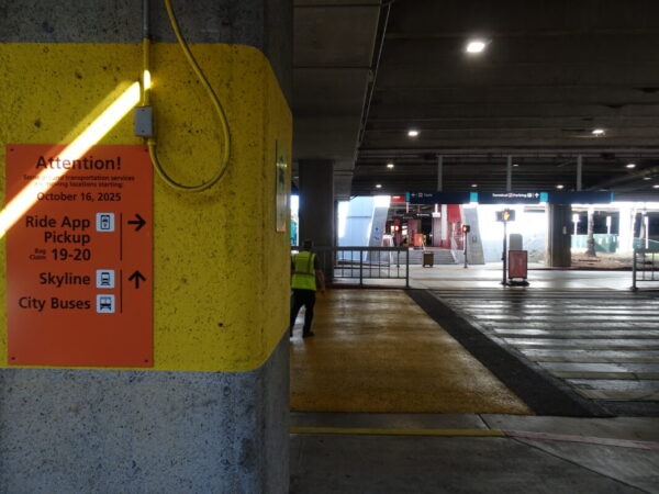 こちらが 柱番号 39 のところの横断歩道、こんな感じで オレンジの臨時の看板になるのかしら Skyline と表記がありますね