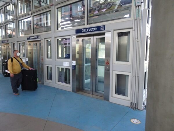 エレベーターにて上へと上がりますが 行先で上がるエレベーターが異なりますのでご注意を