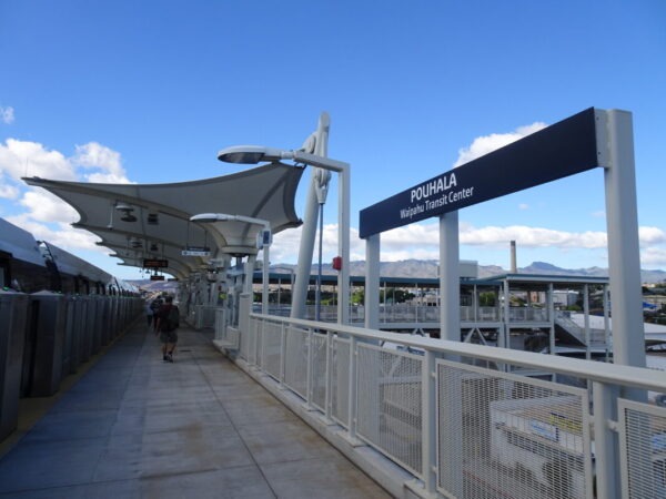 Pouhala(ポウハラ) Waipahu Transit Center 駅に到着 ワイケレ・プレミアム・アウトレット(Waikele Premium Outlets) に鉄道で途中まで来るなら この駅が最寄りかな