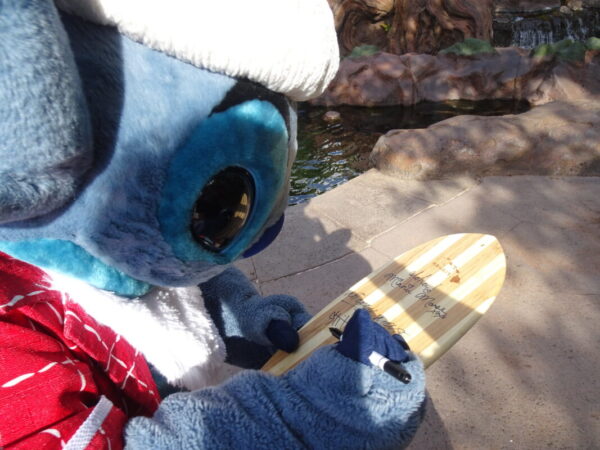 Stitch です。今回は マカヒキ キャラクターグリーティング にて ミッキー ミニー チップ デール と既にサインをもらっていたので キャラクターグリーティング で 初サインです(笑)