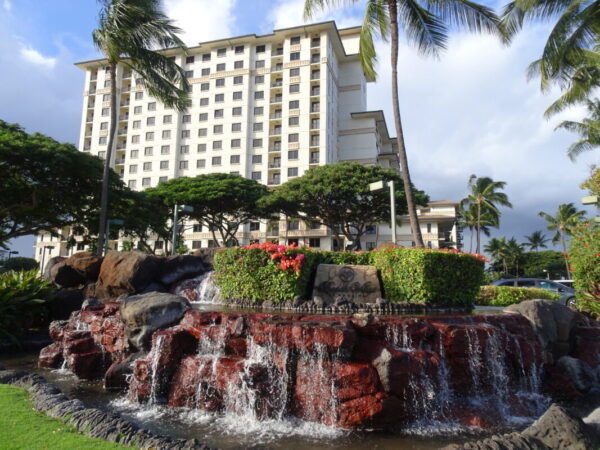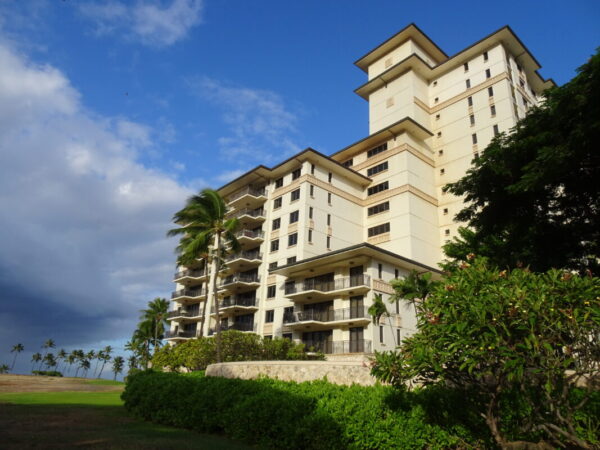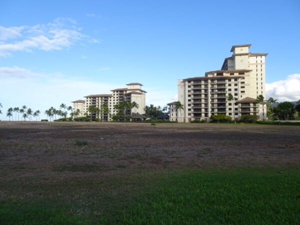コオリナ ビーチ ビラ オーシャン タワー を横目に