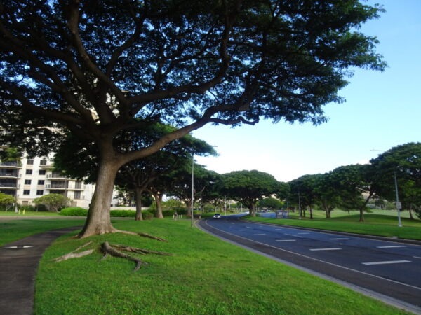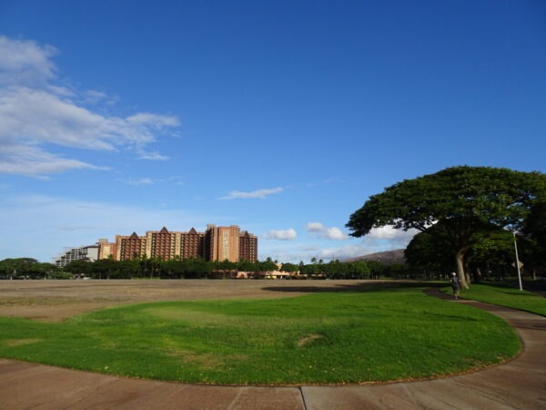 ということで 今はただの空き地ではございますが ARASHI BLAST in HAWAII 結成15周年記念ライブ 会場跡 に想いを馳せさせていただきました。雲行きが怪しくなってきましたよね。このあと ウォーキングを終える頃には雨になりましたので、まさに 15周年記念ライブ会場跡を見学終えるまで お天気もってくれたっていうところかな