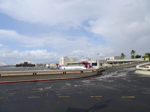 向こうに見えるのは 国内線ですね。オアフ島からハワイ島へ行くのに利用したっけね