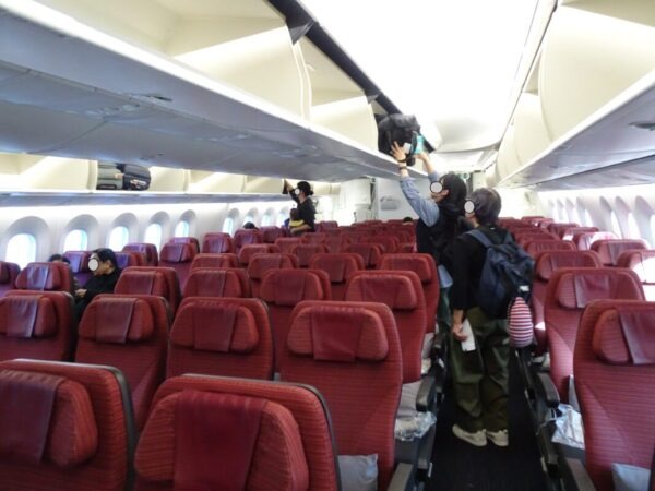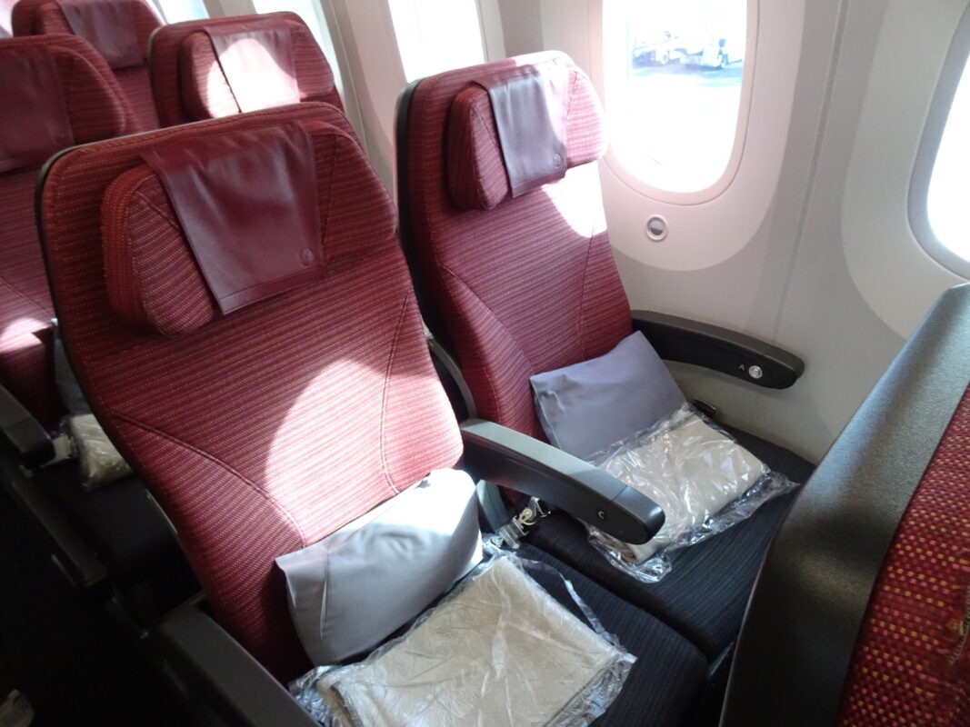 往路に続き エコノミークラス です。座席配列は 2-4-2
