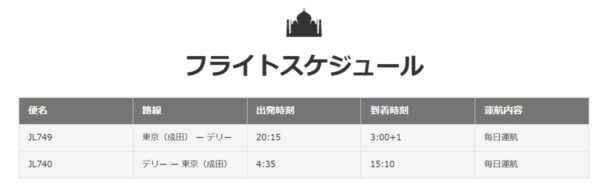 あとは なにしたって 今回 就航いたしました JAL成田=デリー線のフライトスケジュールですよね。東南アジアと北米乗継強化がメインとなっている今回のスケジュールですと 正直 観光で利用するには不向きなんですよね。