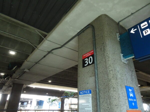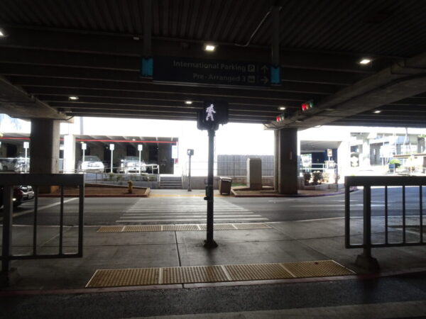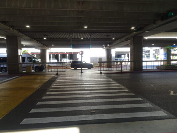 個人出口を出たあたりの案内表記には City Buses とありまして W-LINE はこれを目指していくのですが… 案内通りで行くと… 正直遠回りになるんですよね(苦笑) 柱番号 39 まで回されますからね すぐのところにある こちらの横断歩道で行ってみたいと思います。(柱番号 33近くの地下通路は上りエスカレーターがタイミングでメンテナンスだったものでして…)もちろん 柱番号 33近くの地下通路から行くのが一番いいんだと思いますが