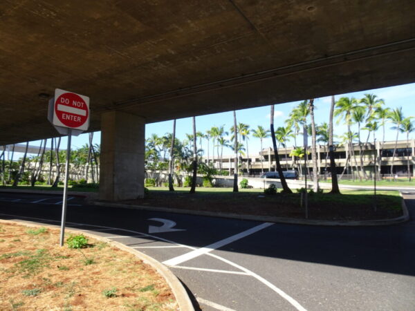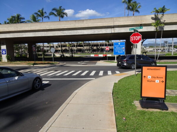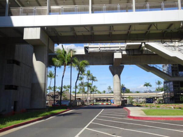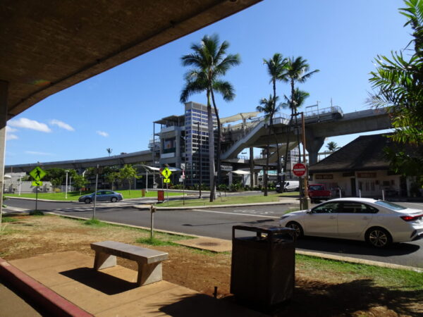 City Buses と表記がありましたね♪ 初めてハワイ というか スカイライン開通後 結構 停留所他移動したこともあって 分かりづらいところ まして これから乗車予定の W-LINE は スカイライン開通後に新設されたルートですので、ちとまだ情報としては少ないところでしょうか あの写真左 高架下の乗降場を目指すわけですが