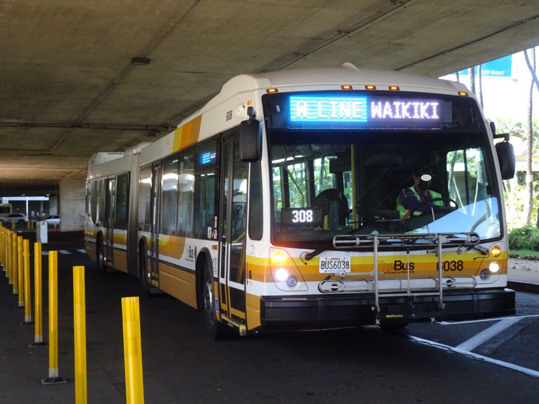 ホノルル国際空港 個人出口 から ワイキキ市内まで The Bus W-LINE にて移動します。なかなか案内表記と異なるところがありますので、注意深く ご参考頂けたらと思います。