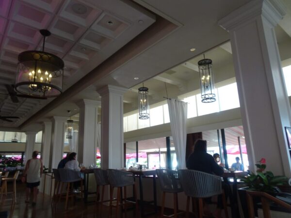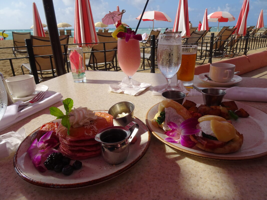 ワイキキビーチウォーク を楽しみまして ロイヤルハワイアンホテル(The Royal Hawaiian) 内にあります サーフ ラナイ(Surf Lanai) にて PINK PALACE PANCAKES を頂いてみたいと思います♪