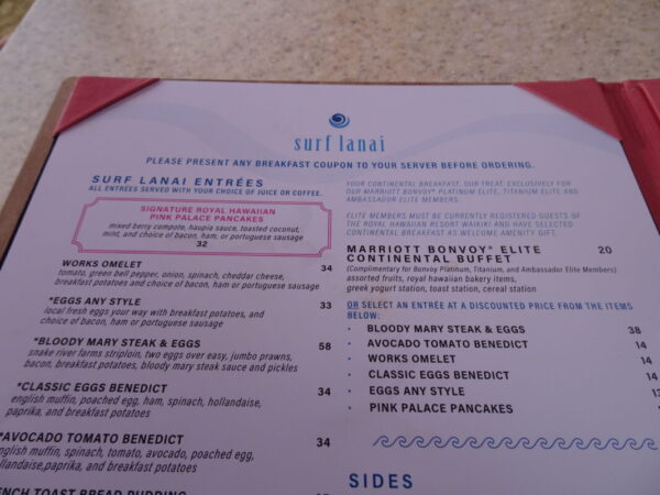 サーフ ラナイ / Surf Lanai に来たからには ピンクパンケーキ であります PINK PALACE PANCAKES 32$ はオーダーしなきゃねぇ♪ ピンク枠で囲われておりました(笑)