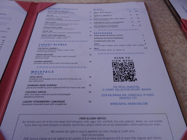 今回の旅行で ロイヤルハワイアンホテル で食事は最初考えていなかったので、来れたことにちと嬉しかったんですよね(笑)