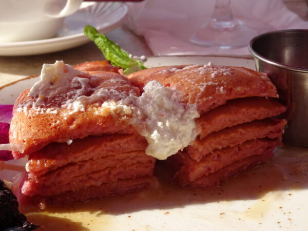 PINK PALACE PANCAKES しっかり断面もピンク(笑) なんか こうやって食事できることが嬉しかったなぁ~ っていうくらい 今回の旅行 詰め込んでたからね(笑)