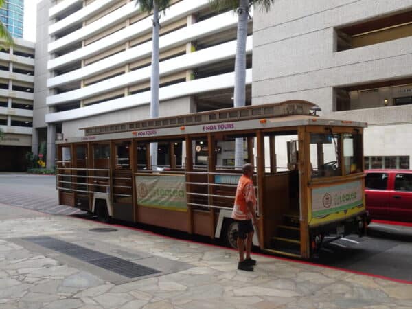 結構、乗車待ちの方 いらっしゃいましたね。今度ワイキキ来たときは これ乗ってみるのもアリかな どのあたり 巡れるんだろうねぇ