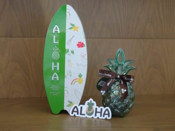 サーフィンボード型 20.95$ / パイナップル オーナメント型 5.95$ / アロハシール 3.00$ TAX込みで 31.31$ (165円換算) 5,174円でした。