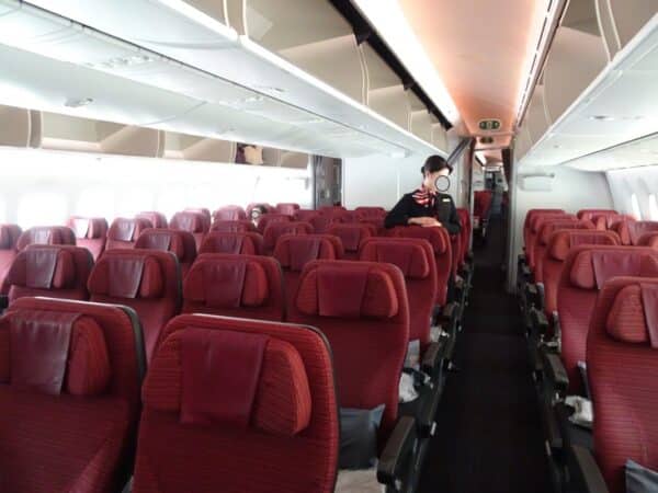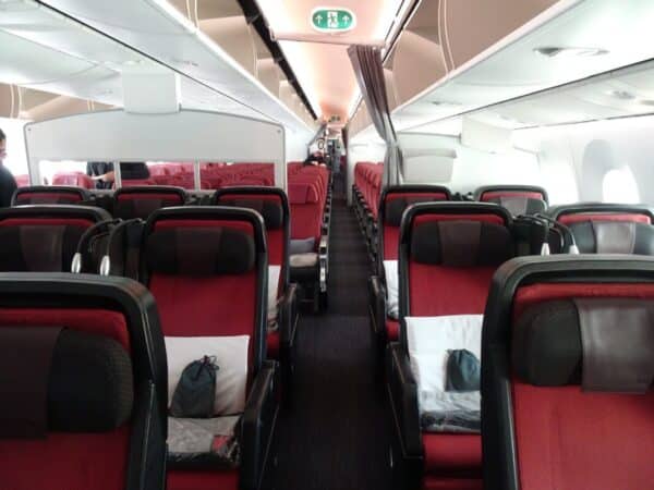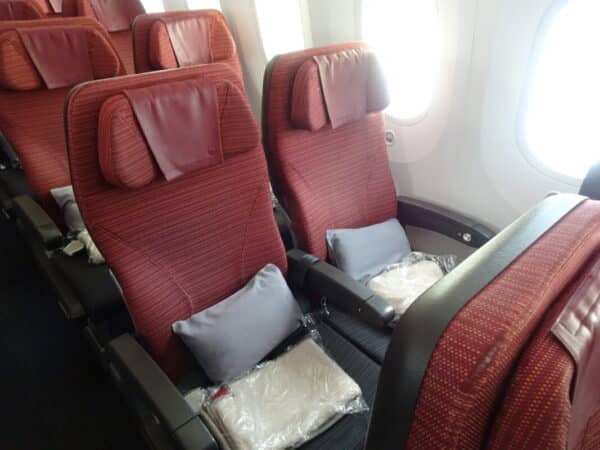 機内へとまいりました。プレミアムエコノミーを過ぎて