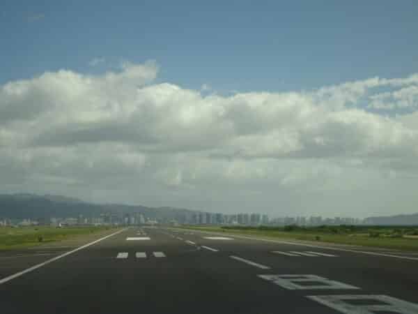 沖の滑走路に向けて移動中