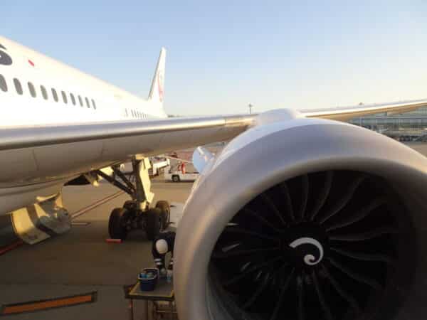 窓からは これから搭乗いたします JAL73便 B787-9 の機体ですね シップナンバー JA873J ということで ARASHI HAWAII JET デカール機だった機材でしたが… まぁ剥がされちゃったら分からん