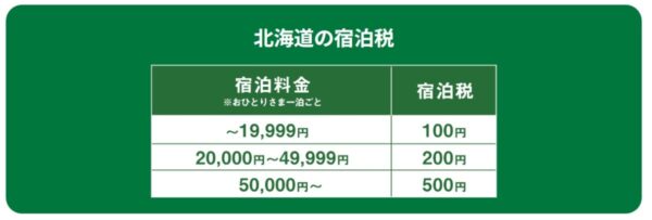 北海道は 2026年04月01日より 北海道内に宿泊される方を対象に 宿泊税を徴収します。観光の付加価値の向上、観光に係るサービス及び旅行者を受け入れるための体制の充実強化 並びに災害等の観光分野における危機に対応するための取組の強化 などに充てる方針です。