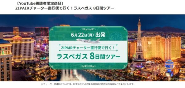 〔YouTube視聴者限定商品〕 ZIPAIRチャーター直行便で行く!ラスベガス 8日間ツアー